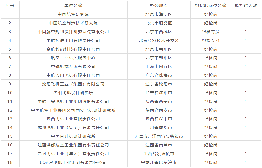 附件:中国航空工业集团2026年纪检监察招聘岗位信息表.xlsx