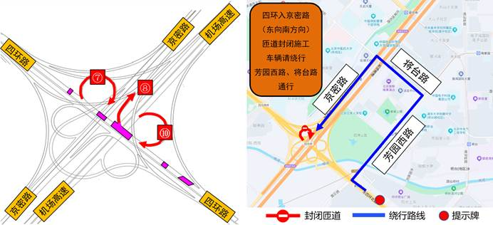 期间,内环匝道不受影响,封闭外环受影响的3条匝道:四环外环向京密路进京匝道、四环外环向京密路出京匝道、机场高速出京向四环外环匝道。