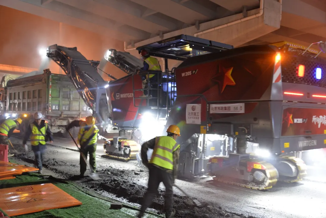 在4月11日-12日、18日-19日的两阶段施工中,参建单位2×48小时昼夜奋战,累计完成内环跨京密路、机场高速4座主线桥及京密路进京向四环外环、四环内环向京密路出京2条匝道桥共计6299平方米桥面铺装层整体翻新。