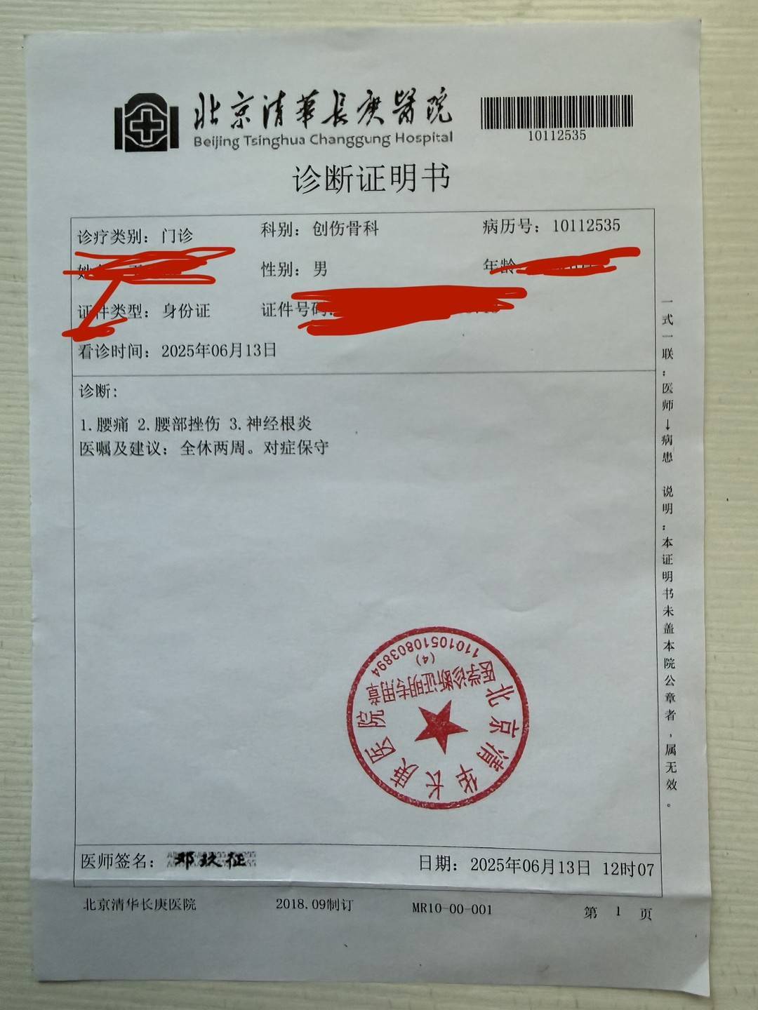 王先生提供的医院诊断证明