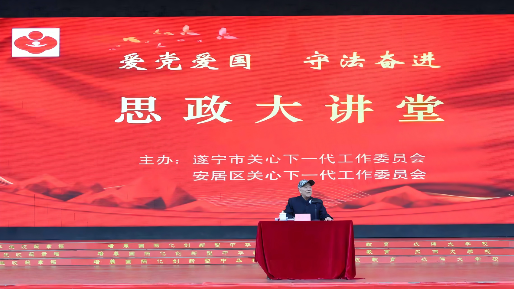 (文/关爱明天全媒体记者 李怡霏 通讯员 黄艳)4月21日,由遂宁市关工委主办的“爱党爱国·守法奋进”思政大讲堂主题宣讲活动在安居区育才中学开讲。活动现场,遂宁市直机关关工委顾问皮国强以《红心永向党·共筑强国梦》为题作专题思政宣讲。