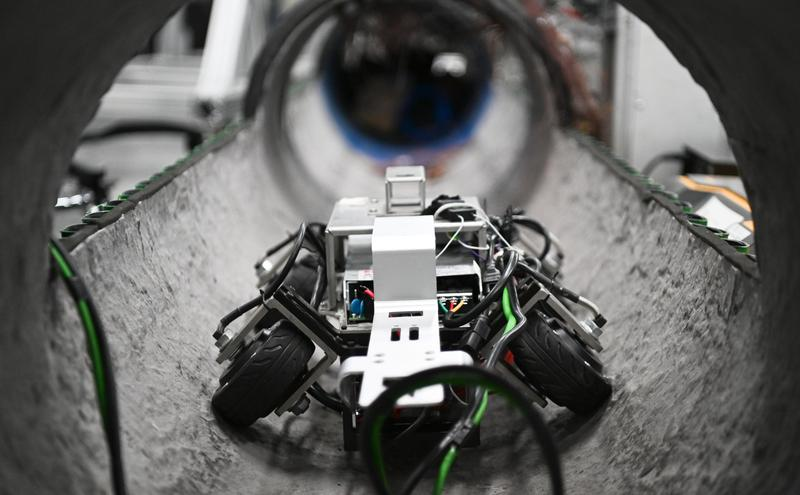 近年来,珠三角地区推动整机、具身智能大模型等共性技术攻关,加快开展具身智能机器人及关键技术的应用示范和推广。图为2025年6月25日,在广东省具身智能机器人创新中心拍摄的管道检测机器人。 新华社记者 邓华/摄