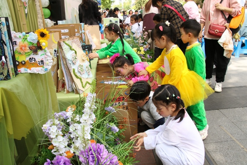 此外,活动现场还打造了多元书香场景,以薇光文明书屋为核心阅读阵地,将书香氛围延伸至街区。孩子们的童诗童画装点紫杉路步行街,三大主题作品错落陈列,薇苗志愿者全程引导讲解。现场创作区同步开放,家长与孩子在专业指导下围绕主题挥毫创作,实现阅读与艺术创作深度融合。同步开启的书香市集人气高涨,居民踊跃捐赠、交换闲置书籍,既盘活图书资源,又以书为媒拉近邻里距离、增进情谊。