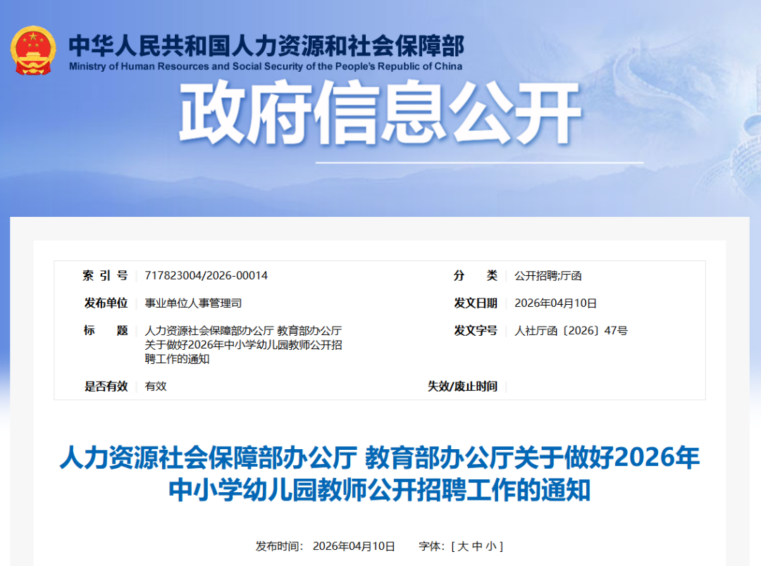 《通知》要求,各地要将教师招聘工作与中小学教职工编制动态调整和幼儿园编制保障统筹研究,着力优化城乡间、校际间、学段间师资结构。科学测算未来3—5年教师需求,形成2026年度教师招聘工作方案。鼓励各地在省级或市级层面统一组织中小学幼儿园教师公开招聘,确保招聘计划与长期生源变化、学校发展规划相匹配。各地要科学合理设置招聘年龄条件。将招聘年龄条件放宽至38周岁(含)以下,各地可结合本地实际和岗位需要,对具有博士研究生学历学位的人员、退役军人、符合艰苦边远地区基层事业单位公开招聘倾斜政策的急需紧缺人才,年龄放宽至40周岁或再作适当放宽。各地要拓宽教师招聘渠道。做好“特岗计划”“国优计划”和部属公费师范生、“优师计划”师范生等公费教育专项计划组织实施。各地要结合实际情况,合理补充紧缺学科师资和学前教育、特殊教育领域师资,加快储备人工智能教育师资,推动人工智能与教育教学深度融合。