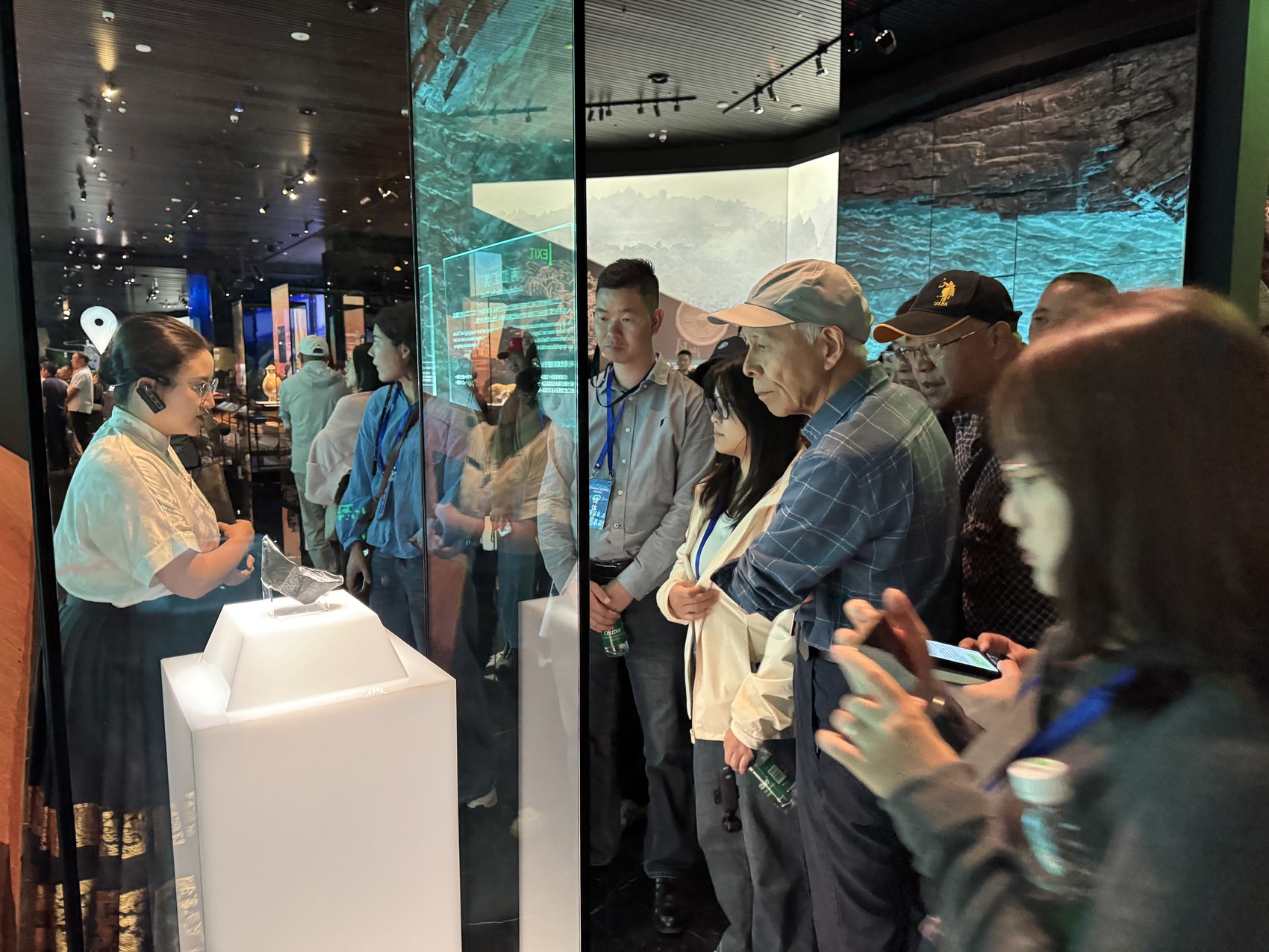 他的身后,一群来自武汉的退伍老兵围着“蜀世子宝”金印仔细端详。“我们战友聚会,特意把江口沉银博物馆选为行程目标之一。”张先生语气里带着兴奋,“这里的历史文化底蕴太深厚了,让我们对那段历史有了更多了解。”