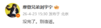 4月23日,刘宇宁发文辟谣恋情传闻:“没完了。别造谣。 ”