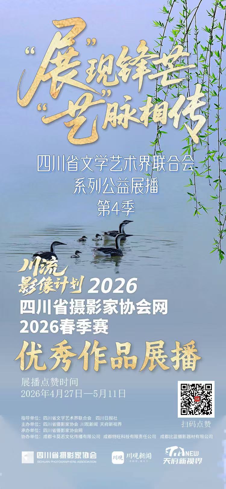 4月27日,由四川省文学艺术界联合会与四川日报社联合推出的“‘展’现锋芒 ‘艺’脉相传”系列公益活动第4季之川流影像计划——“四川省摄影家协会网2026春季赛”优秀作品展播正式开启。