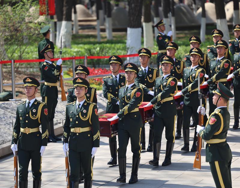 4月23日,第十三批在韩中国人民志愿军烈士遗骸安葬仪式在沈阳抗美援朝烈士陵园举行。12位志愿军烈士英灵在阔别祖国70多年后回到中华大地安息。