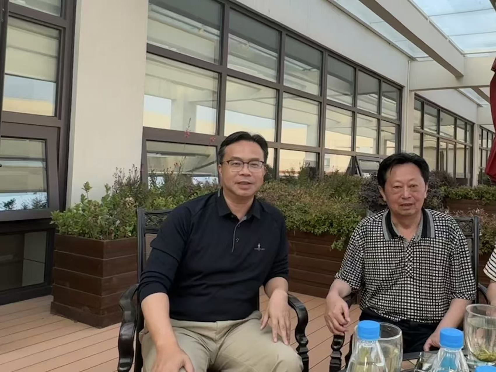 刘圣(左)与高中班主任王兴奇(右)在苏州。图据受访者。