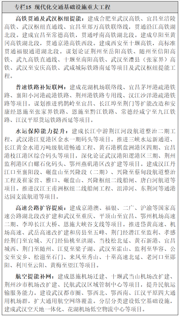 4月23日,《湖北省国民经济和社会发展第十五个五年规划纲要》全文正式发布,其中铁路相关重点内容如下: