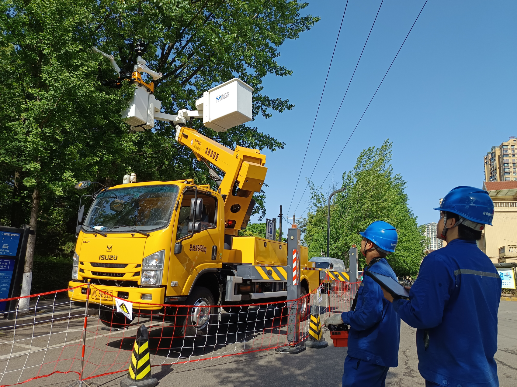 树线矛盾一直是影响配电线路安全运行的重大隐患,容易引发线路跳闸、断线、人员触电等危险。此次机器人带电修剪树枝实现全过程智能化、精准化,依托高精度视觉定位与远程操控系统,机械臂按照预定路径,对靠近架空线路的树枝进行精确修剪、清理,全程无需作业人员直接接触带电体,有效规避了传统带电作业中可能发生的触电、高空坠落等安全事故。在大幅降低安全风险的同时,作业质率较传统模式提升近30%,仅用不到1小时便完成了带电修剪树枝工作,消除了树枝与线路距离不足的安全隐患。