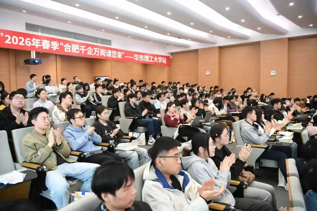 招聘会期间,合肥市在华东理工大学举行专场城市推介会,全方位介绍城市发展环境、人才安居政策、创新创业扶持举措等内容。“通过推介会,我对合肥有了更全面的认识,希望以后可以加入合肥这座科创名城。”推介会现场,控制工程专业的在读研究生王国振和同学们对合肥好感倍增,认为合肥发展前景广阔,是未来就业的理想选择。