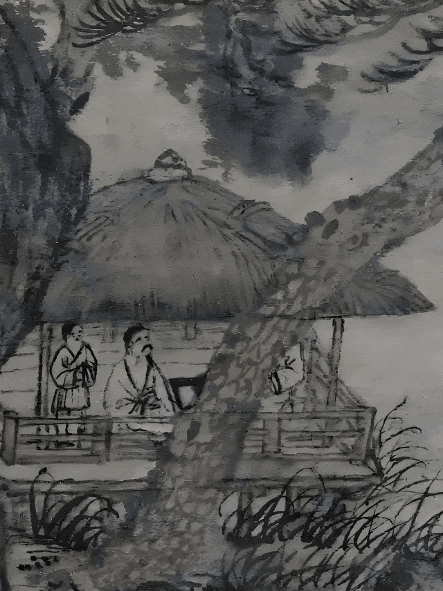 《春山读书图》(局部)(元)王蒙