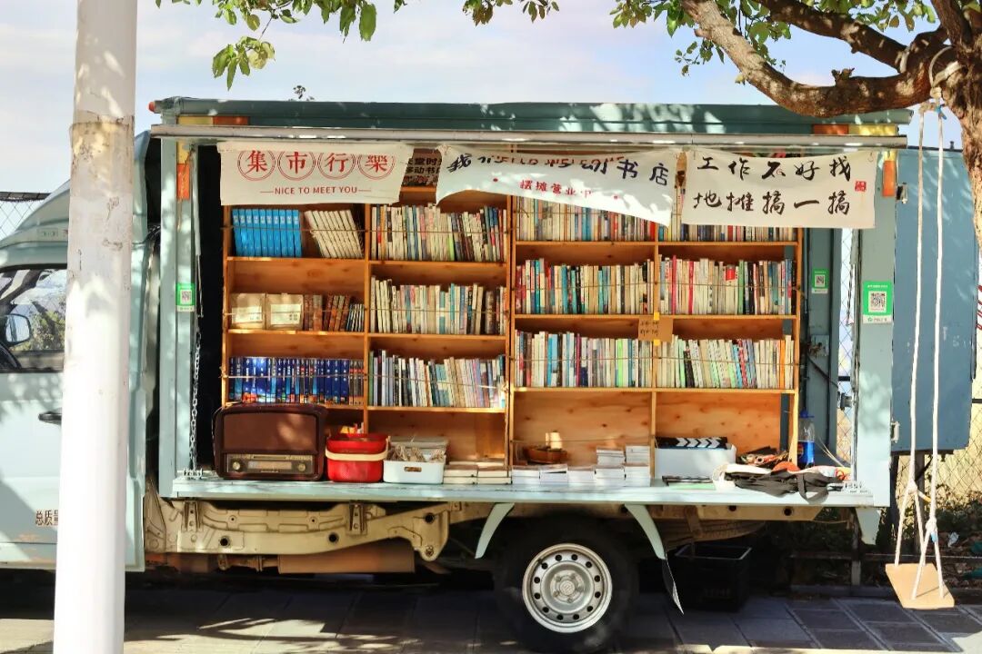 他那辆写着“我们的移动书店”的大卡车,如今已成为大理一道美丽的风景线,记者和老潘在大理的第二次见面,就是在他的“移动书店”大卡车旁边。