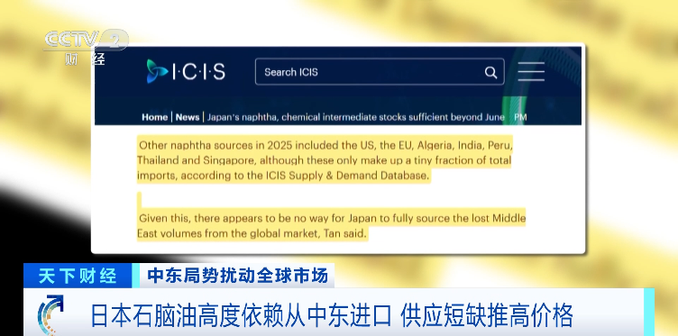 日本虽然拥有较为充足的原油战略储备,但石脑油的情况却完全不同。根据《日本时报》的报道,该国40%的石脑油直接来自中东,而本国生产的部分,也有约40%需要提炼自主要来源为中东的原油。