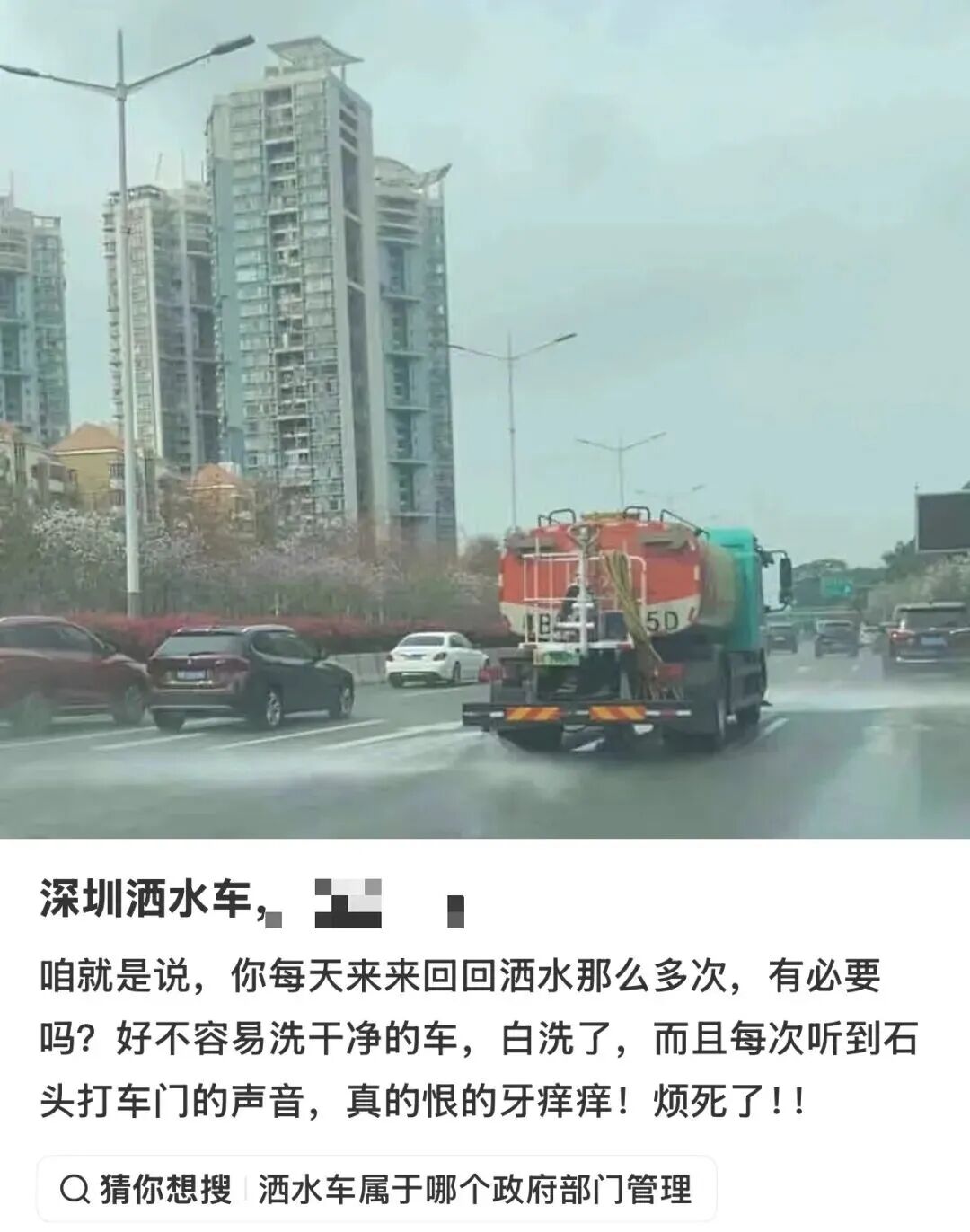 今年深圳凭借优美市容与满城花草频频登上热搜,城市形象持续提升,但与之形成反差的是,洒水车扰民问题仍屡遭市民投诉,成为城市治理中的一处明显短板。