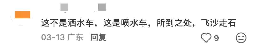 有深圳论坛网友反映,宝安区福海街道幸福花园门口二十四区间的洒水车,每天7点半左右作业,作业人员“见人也不停”“洒路人一身水一身尘”。深圳小学门口路段上班、上学高峰期也成了洒水车的工作时段,“有人经过还不停,一直喷”,电动车骑行在洒过水后的湿滑路面十分危险。