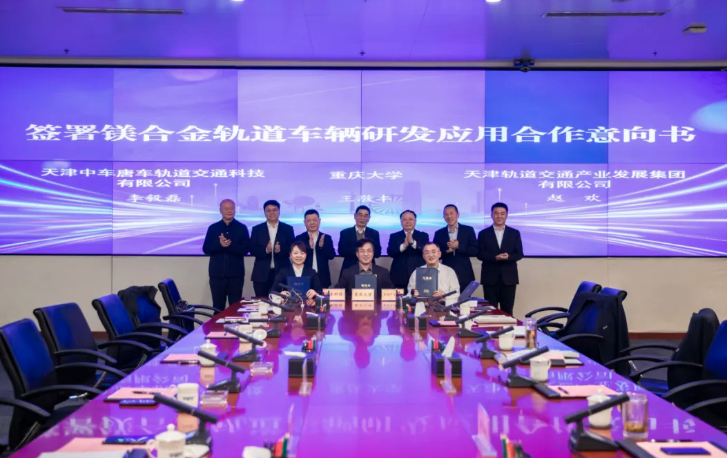 根据合作意向书,天津轨道产发集团、天津唐车科技公司与重庆大学将整合资源优势,在镁合金轨道车辆技术研发、产品试验、示范应用及产业落地方面开展全面合作。