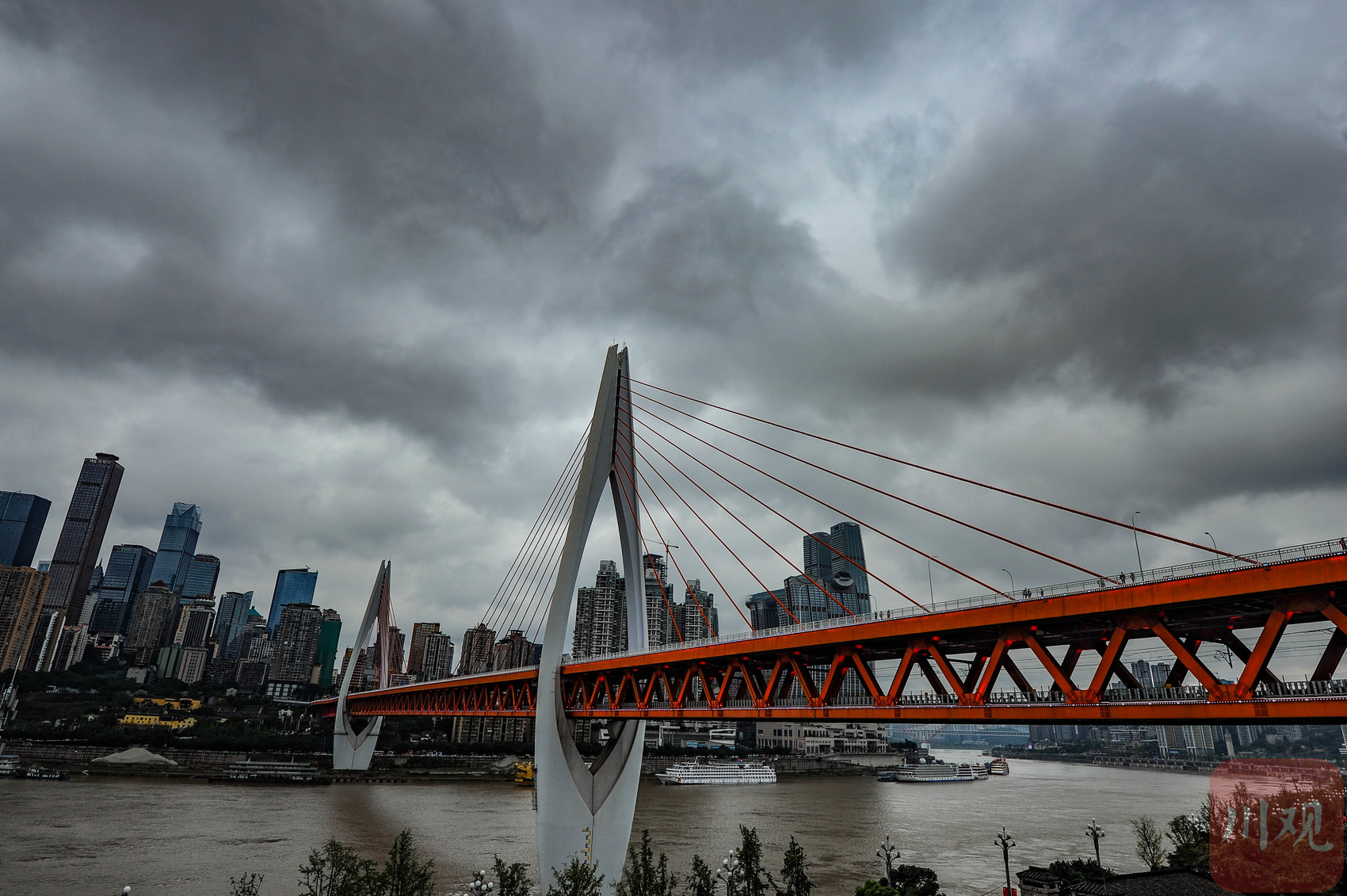 重庆东水门长江大桥横跨长江,连接渝中区与南岸区。