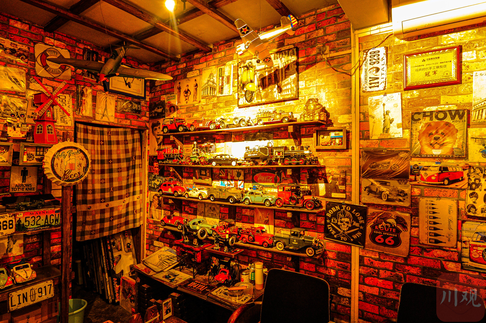 重庆磁器口古镇复古店铺内的汽车模型收藏。