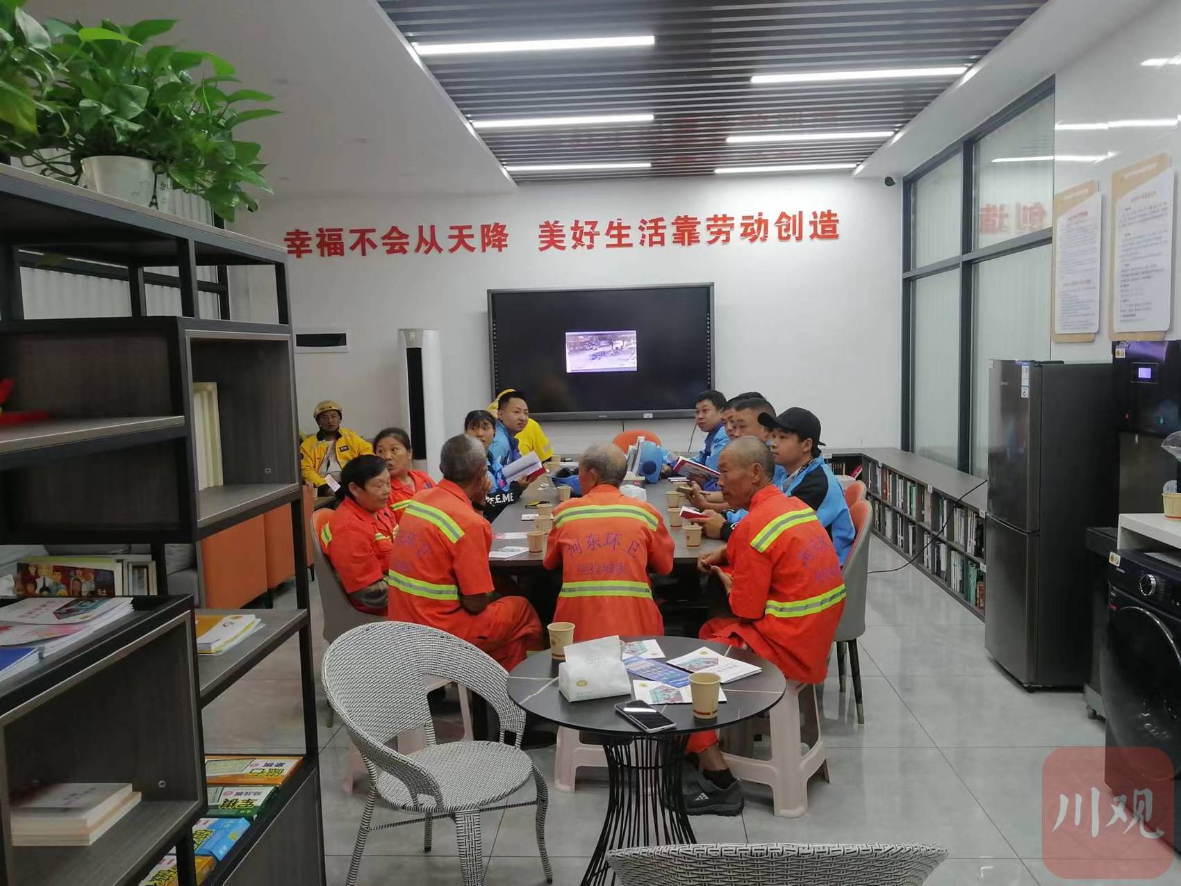 在遂宁市市民中心旁,一座200平方米的工会驿站上面“城市户外劳动者综合服务体”的标语格外醒目,环卫工人、等待充电的网约车司机、休息的送餐员在此进进出出……