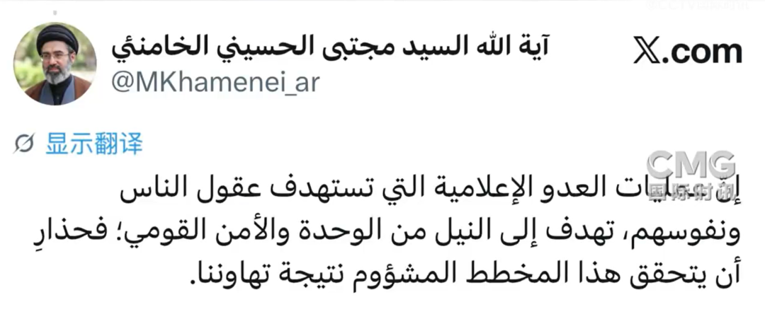 伊朗最高领袖穆杰塔巴·哈梅内伊当地时间4月23日晚在社交媒体发文指出,敌人发动媒体宣传,企图操纵伊朗民众思想,破坏伊朗团结与安全。他警告说,绝不能因己方疏忽而让敌人这一险恶图谋得逞。穆杰塔巴的社媒账号写道,当前伊朗同胞之间的惊人团结已使敌方阵营出现分裂。