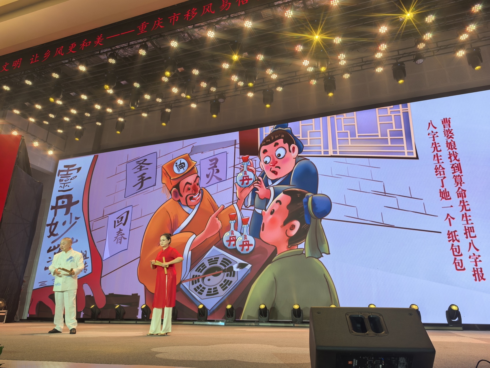 “老人活着时享福才是真孝顺,逝后搞那些排场,没得意思。”在当晚的舞台上,万州区选送的曲艺表演唱《厚养才是真孝心》,融合了竹琴、清音等非遗元素,用悠扬的唱腔批判丧葬陋习,礼赞身边的孝亲典范,引得台下观众频频点头。