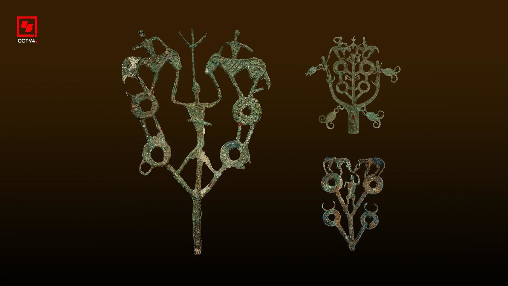 盐源出土的青铜枝形器造型繁复,纹饰丰富,映射出太阳、树与马的多重崇拜,尤以双马造型尤为独特。