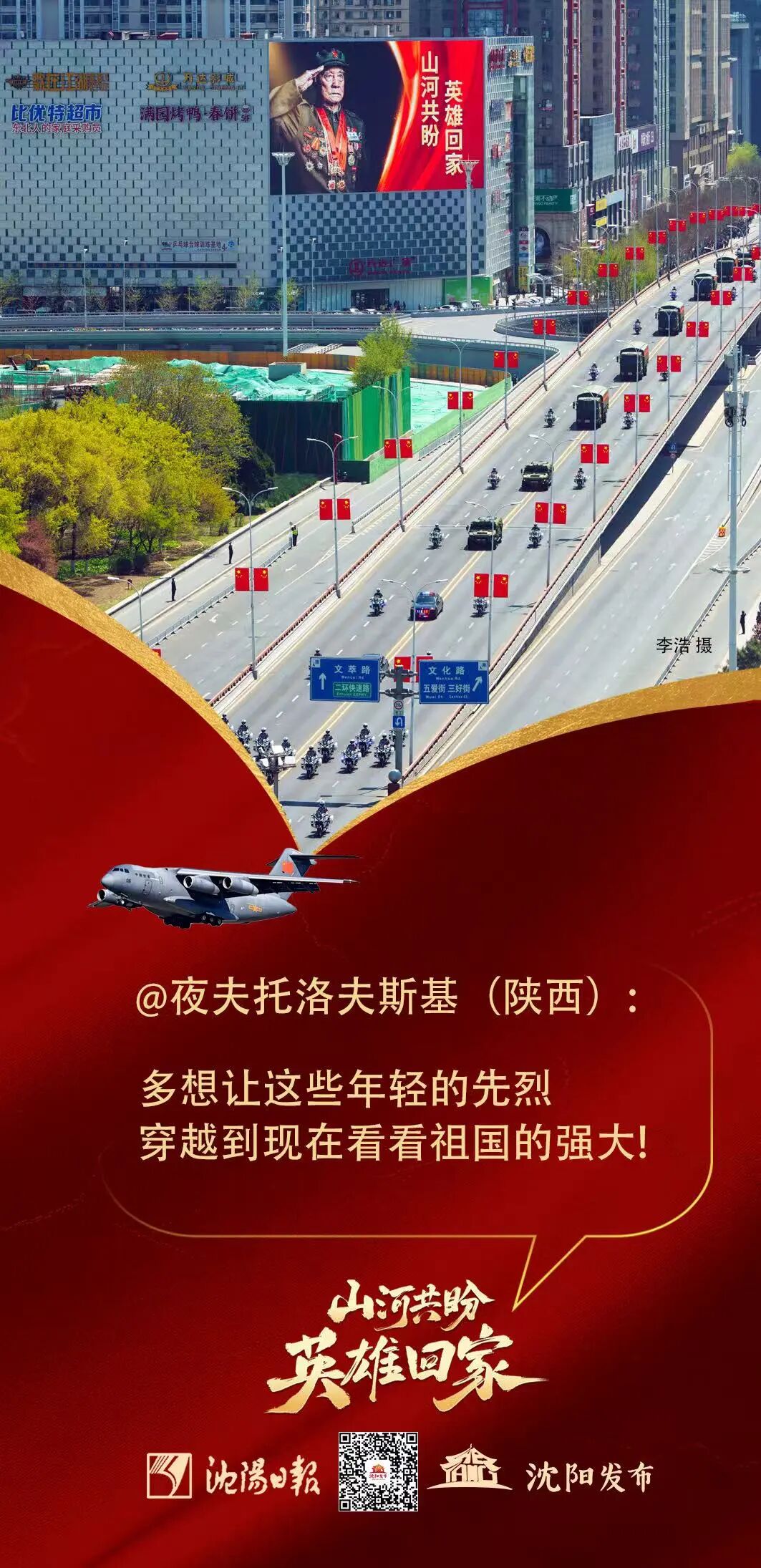 有网友提议:“再回来一批志愿军烈士遗骸,让他们从每个沿海城市过一下,让他们看看如今中国发展的辉煌。”——这是生者对逝者最深情的回馈:你没能看到的盛世,我替你看了;你没能享受到的繁华,我替你感受了。
