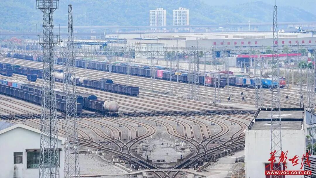 汽笛声声,车轮滚滚,轰鸣之下,离洪江古商城70多公里开外的怀化西编组站内,64股轨道交错,仿若血脉,蓬勃有力。