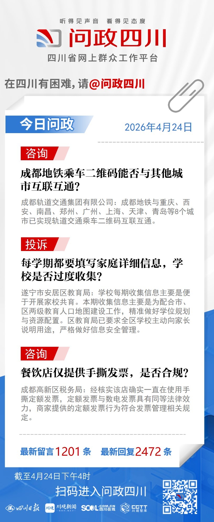 问政四川网友提问:五一假期临近,不少家庭将出游。为方便四川群众出行,成都地铁APP能否与其他城市的轨道交通互联互通?