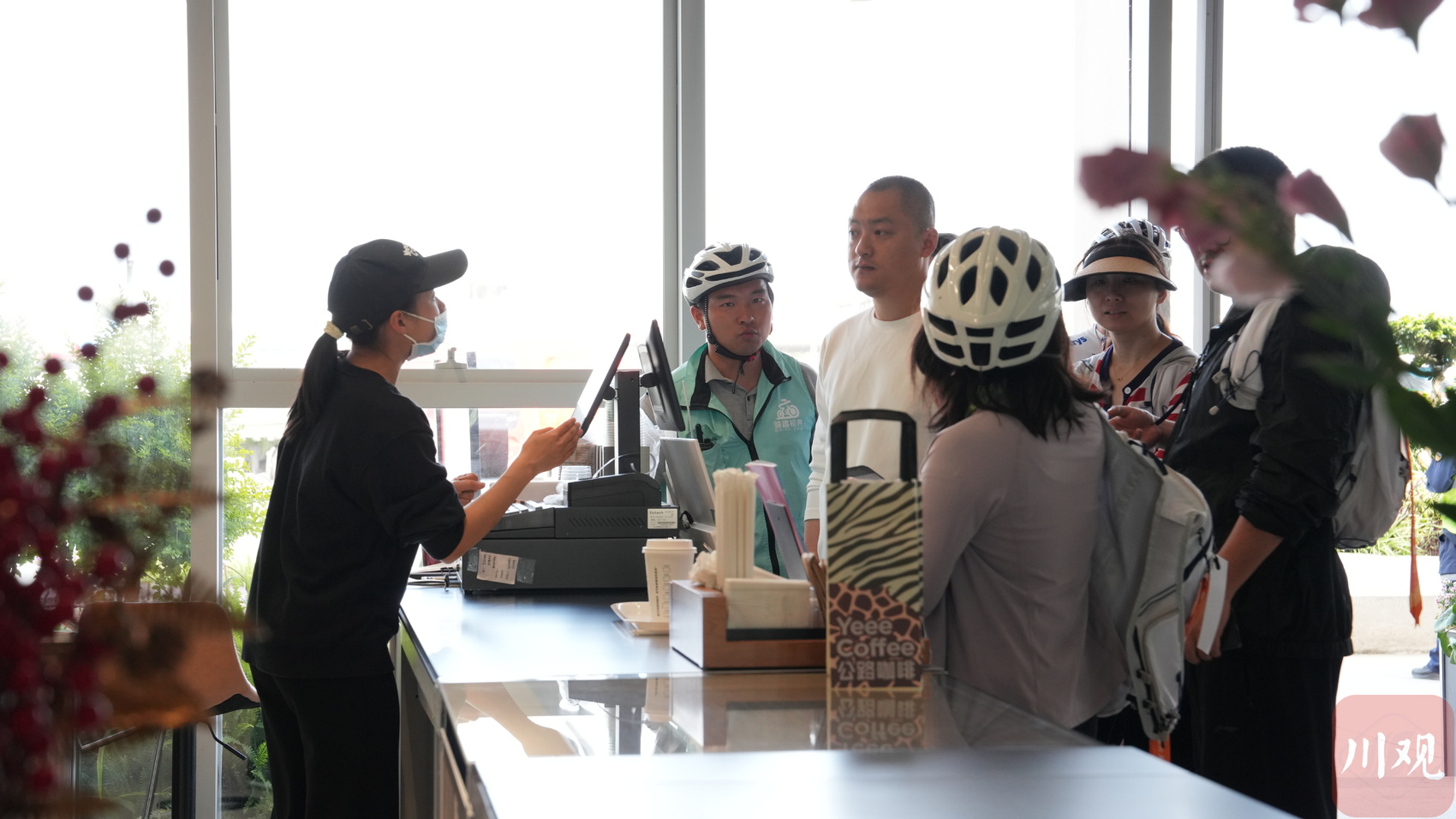 “成都东服务区骑行点,是环城绿道几个骑行点之一,我们提供租车和维修服务”,谢立介绍。“以前都是大货车、大客车来歇个脚就走,现在私家车特别多,还有好多专门骑着自行车过来的骑行爱好者。大家停留的时间明显拉长了,愿意在这里逛逛、喝杯咖啡、吃点东西。”