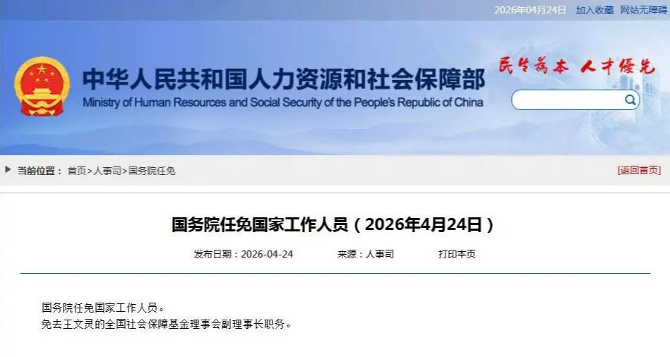免去王文灵的全国社会保障基金理事会副理事长职务。