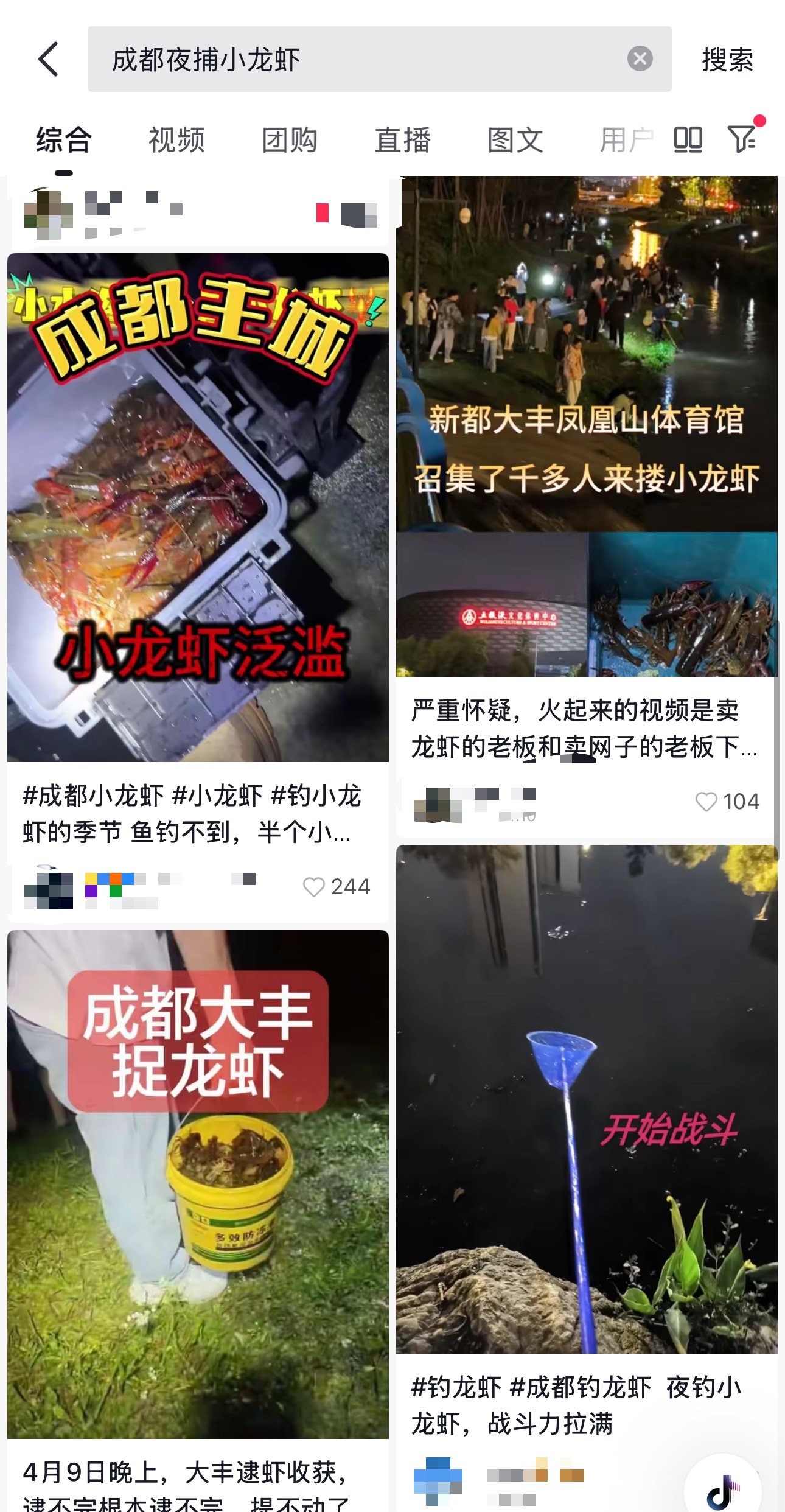 这一幕,近期在成都青龙湖、凤凰山体育公园、天府艺术公园、麓湖等多处水系周边频频上演。夜间灯光点点,在抖音上搜索“成都夜捕小龙虾”,满屏都是市民分享的“战果”视频,有人一晚能捞上好几斤。