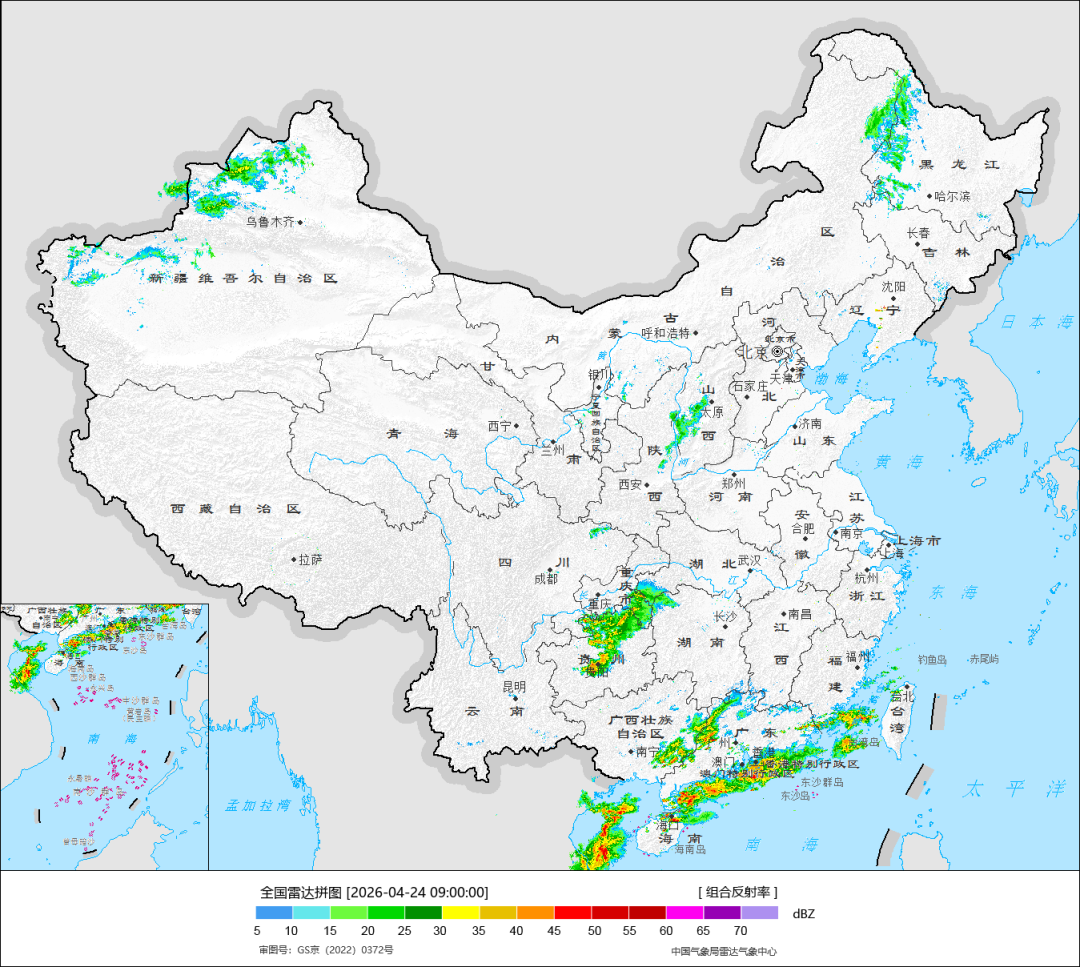 今天(24日),广东南部、海南岛等地强降水范围减小、强度减弱。但预计24日,广东中南部沿海、海南岛大部、台湾岛西部等地部分地区有大雨,其中,广东东南部沿海、海南岛中部局地有暴雨(50至80毫米),并伴有短时强降水。