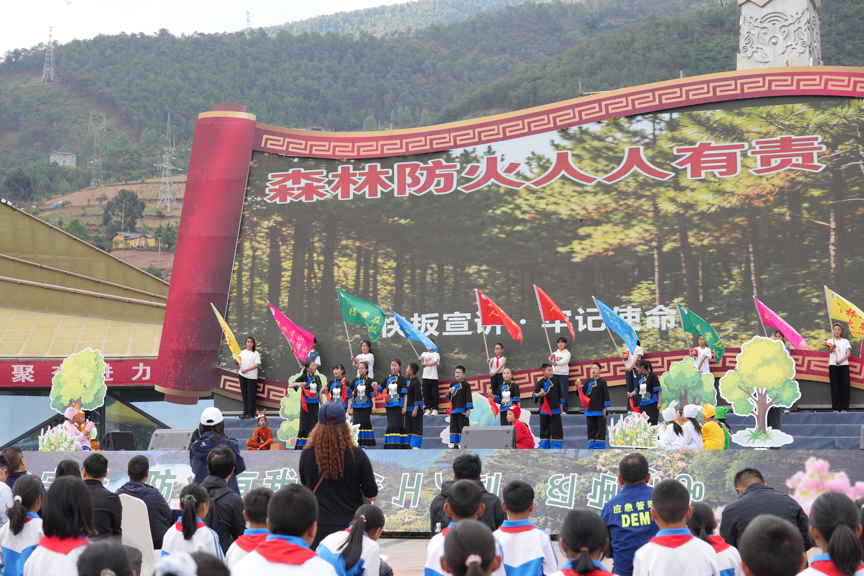 活动现场,融合彝族文化特色和森林防火元素的表演轮番登场。喜德县光明镇中心幼儿园的小朋友唱响《森林防火之歌》,用稚嫩歌声呼吁守护绿色家园;国家级非遗代表性项目彝族克智的传承人阿伍古则登台,以地道彝腔宣讲防火政策与火源管控要求;喜德县城关小学带来防火主题舞台剧,以情景演绎、警示故事倡导文明用火。“彝乡守绿·防火有我”签名墙前,老人、学生、志愿者们签下自己的名字,将防火承诺和安全理念印在心中。