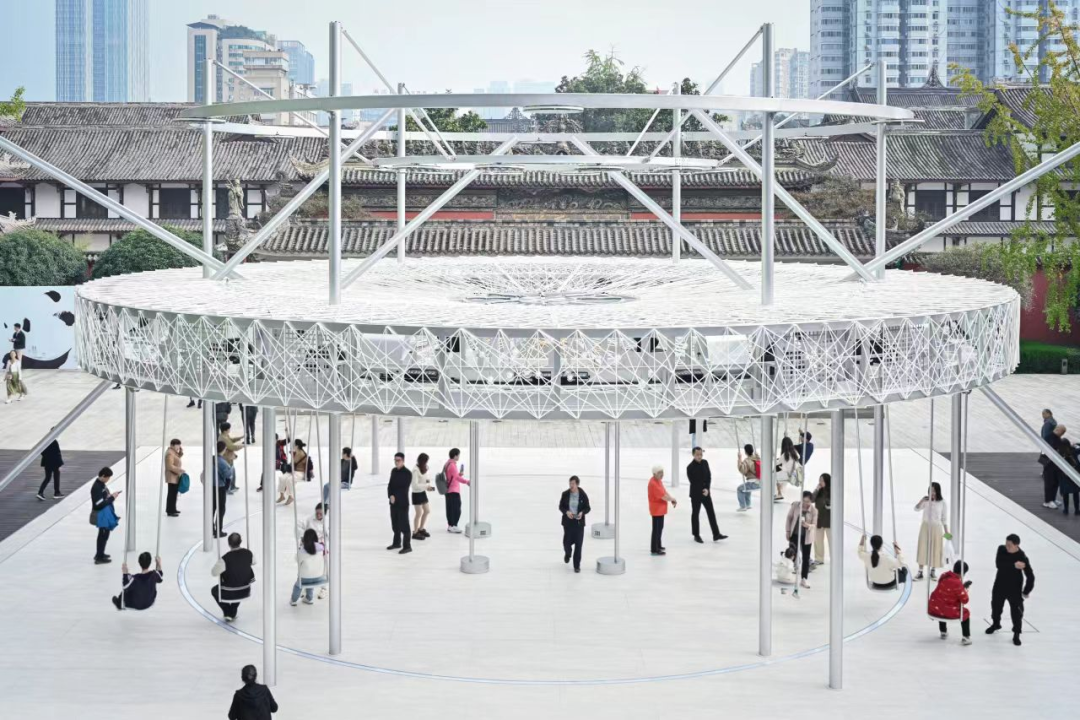 除此之外,每年秋日以艺术为主调的创意呈现同样令人印象深刻,如2024年大型公共艺术装置“悦动的山丘”呈现出一座梦幻诗意又绚烂活力的艺术互动景观,2023年大型公共艺术装置“松弛”则采用宏大的编织穹顶与穿插的线条,勾勒出恢弘的美学场景......时光荏苒,艺术、文化在此持续流转,成都太古里一直以来的“场所营造”将城市公共空间的开放及共享提升至新的高度,公众游走其间身临其境,恣意感受个体与环境、自然交融共生,充分享受都市美学生活带来的心灵自在与精神通达。