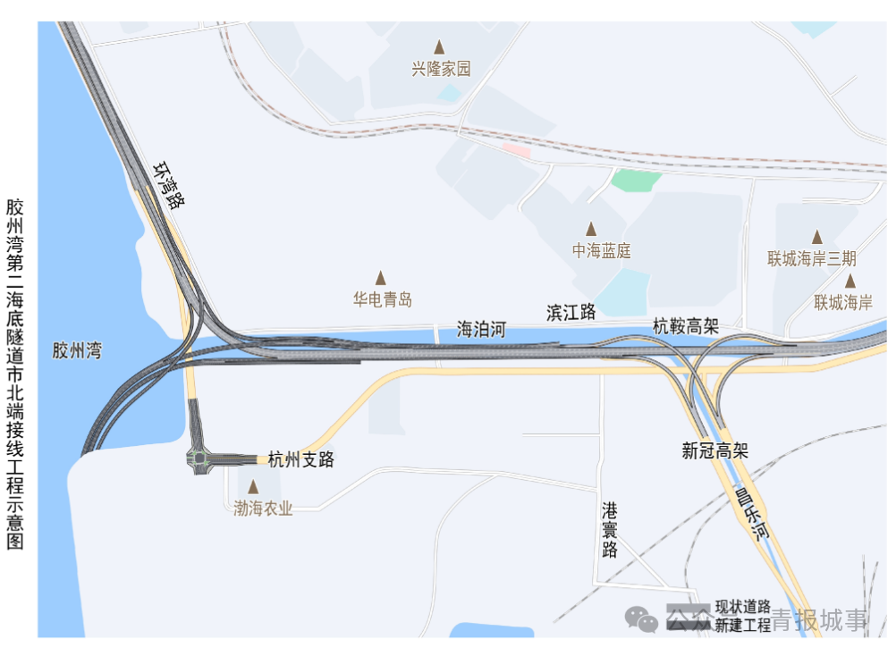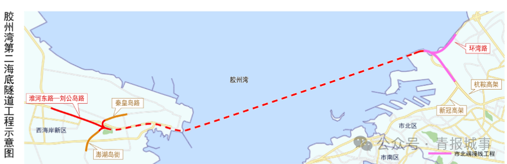 4月24日,青岛市自然资源和规划局发布了胶州湾第二海底隧道市北端接线工程方案批前公示,项目位于青岛市北区环湾路、杭鞍高架、杭州支路。