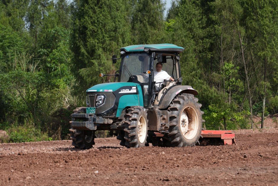 “强村公司”农机服务队翻耕土地。何佳林 摄