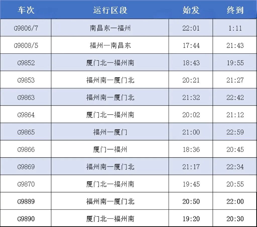 其中多趟列车涉及福州!