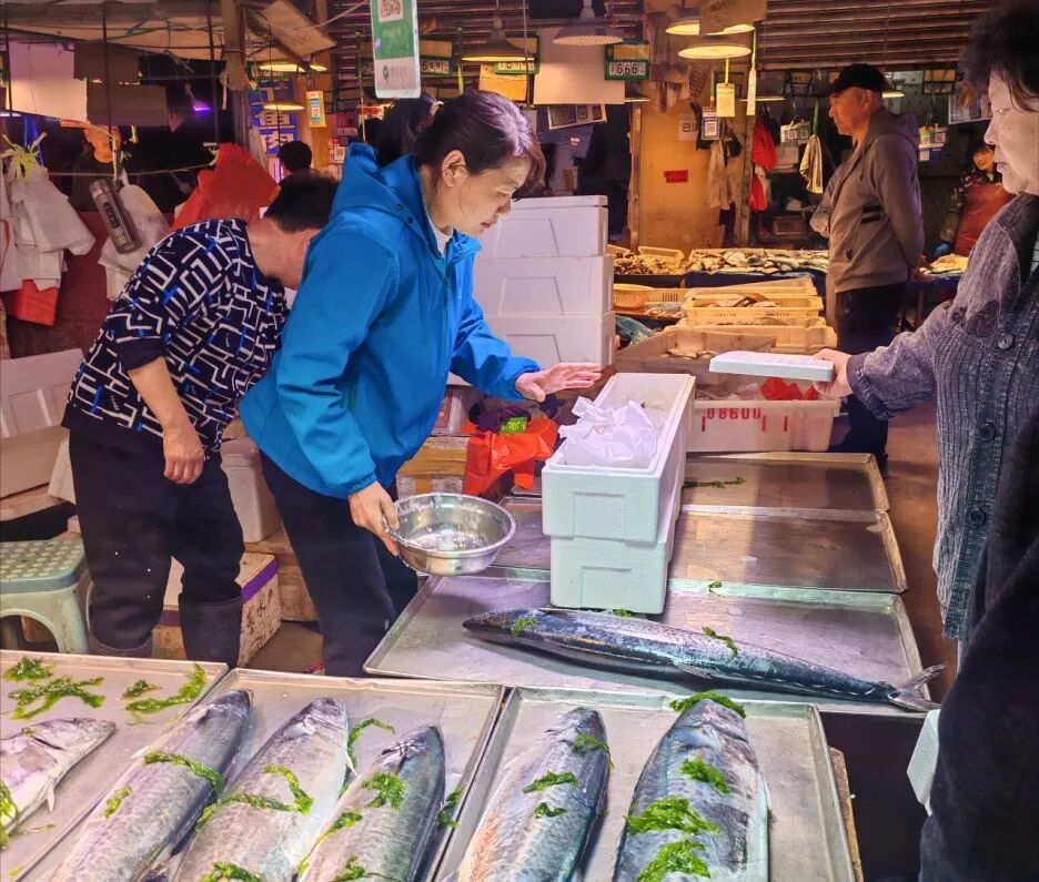 想挑到最新鲜的鲅鱼,诀窍很简单——鱼眼越黑亮、鱼身那道绿光越耀眼,说明上岸时间越短,鲜度越高。个头小的鲅鱼也更贵,一是量少,二是肉质更细嫩。