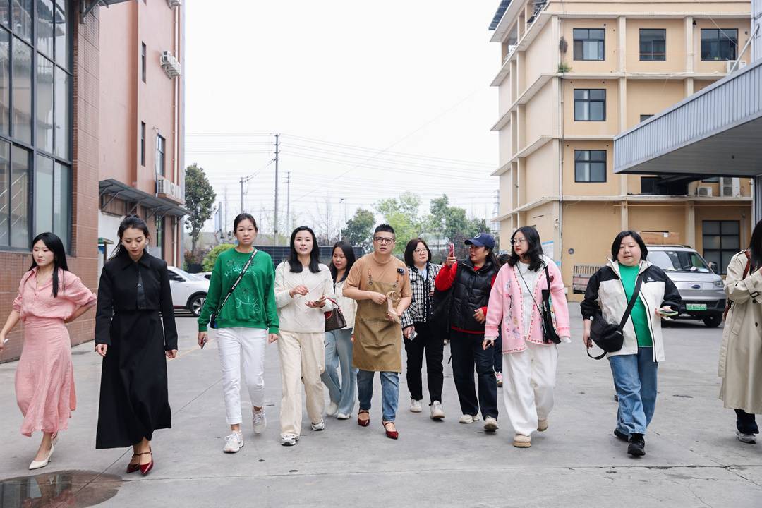 肖龙穿着高跟鞋带粉丝参观生产线