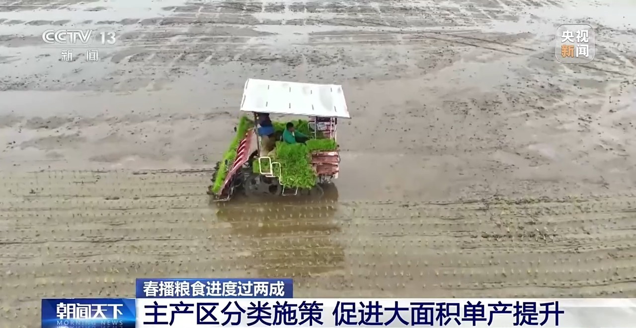 农业农村部农情调度显示,目前,全国春播粮食进度已过两成,同比持平略快,其中早稻播栽过八成,春玉米播种过一成,春大豆播种陆续展开,意向面积总体稳定。各地因地制宜、分类施策,促进大面积单产提升。