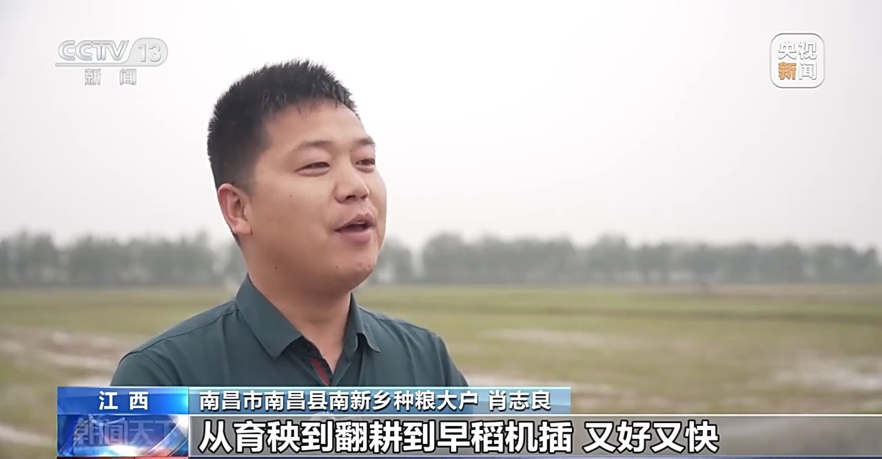 江西南昌市南昌县南新乡种粮大户 肖志良:从育秧到翻耕到早稻机插,又好又快,包括后期的田间管理,收割也全部是机械化,像我一个人就种了500多亩田非常轻松。