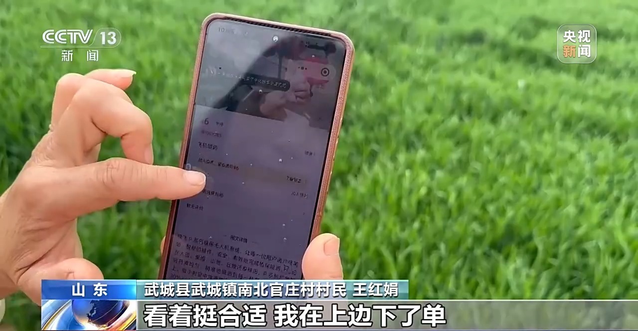 武城县武城镇南北官庄村村民 王红娟:现在手机上有一个小程序,农药、飞机喷洒都是明码标价,看着挺合适,我在上边下了单,不到半小时的时间就喷完了。