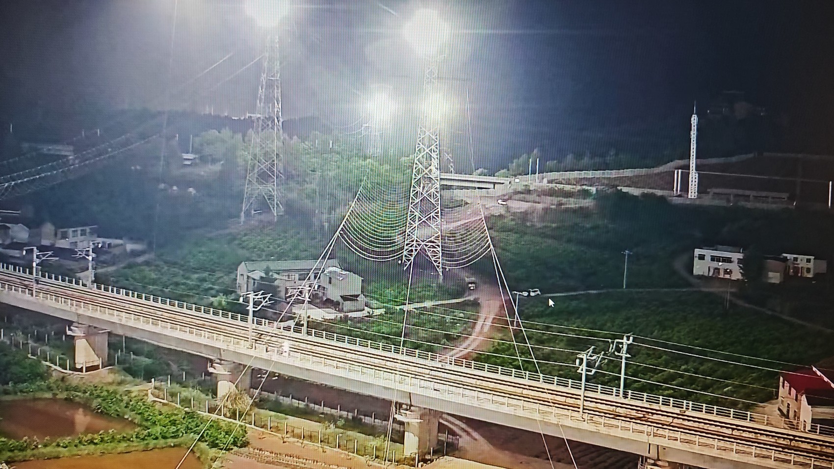 4月23日凌晨,在资阳市雁江区迎接镇杜家沟,国网资阳供电公司利用高铁停运的凌晨“天窗期”,顺利实施临空220kV线路工程封网及放线作业。据悉,这是资阳电力首次挑战双线路同跨两条高铁的高难度施工,填补了当地该项施工的技术空白。