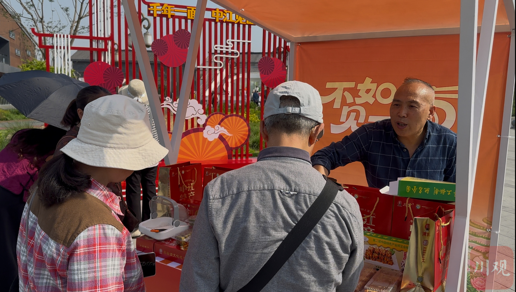 游客们在活动现场购买四川特色美食。