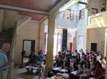 学生们在翻新的老建筑内听外籍教授授课。(受访者供图)