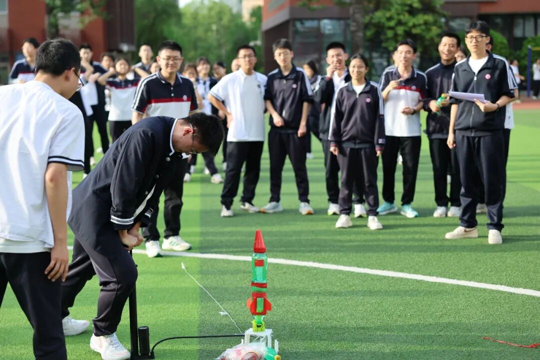 4月24日是第十一个“中国航天日”,今年是中国航天事业创建70周年。聚焦“七秩问天路携手探九霄”主题,西安多所学校搭台筑梦,通过开展趣味盎然的航天科普宣讲、融入航天元素的特色活动、创意十足的水火箭比赛等,用科学的种子浸润童心,引导少年学子以科创之力逐梦苍穹、致敬航天。图为西安铁一中水火箭比赛现场。(西安报业全媒体首席记者 程静 摄)