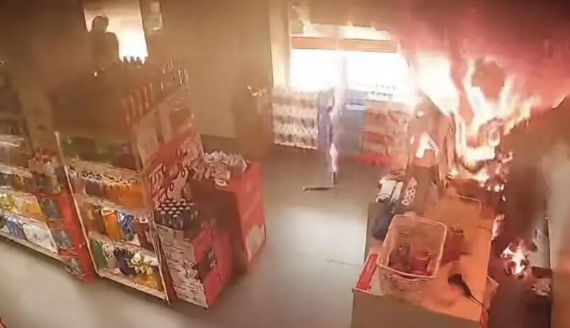 店铺起火画面。